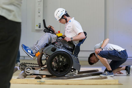 محوطه Balgrist پذیرای پژوهشگران و فعالیت آنها است. پس از گذشت ده ماه و تغییرات فنی بیشمار، صندلی چرخدار گروه Scewo برای اولین آزمایش آماده است. Pascal Buholzer با توجه به مقررات مسابقه کاربر صندلی چرخدار، Josep Ballester را در عبور از موانع همراهی میکند. در حالی که صندلی چرخدار بدون زحمت از پله ها عبور میکند، قدرت مانور آن در هنگام باز کردن در و ثبات آن در زمین ناهموار نیز باید مطلوب باشد.